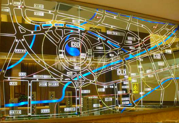 五、壁掛式沙盤模型:國內建筑模型企業在現有產品的基礎上,根據眾多客戶由于場地限制或特殊需要,開發出了壁掛式模型,很好的解決了場地限制和滿足了用戶的特殊需要,并得到了用戶充分的認可。此模型同樣可以移動、掛起,可以和電腦、大屏幕顯示器相連接,進行多媒體同步演示。特別適合房產開發區位模型及交通多媒體沙盤的使用。
